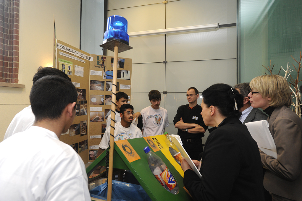 Kosten- und wegesparende Partnerschaftsmodelle wurden präsentiert, Produkte vorgestellt, die ausschließlich aus Recyclingmaterial hergestellt wurden, ja sogar ein richtiges Insektenhotel konnte bestaunt werden. Die Liste der kreativen Ideen zeigte, wie zahlreich die Ansatzpunkte für Umweltschutz sind, aber das machte die Arbeit der Jurymitglieder nicht einfacher. Sie hatten zu entscheiden, welche Ideen im Bezug auf Übertragbarkeit, ökologischen Mehrwert aber eben auch in punkto ökonomischer Nutzen am herausragendsten waren. Hier die Gewinner: